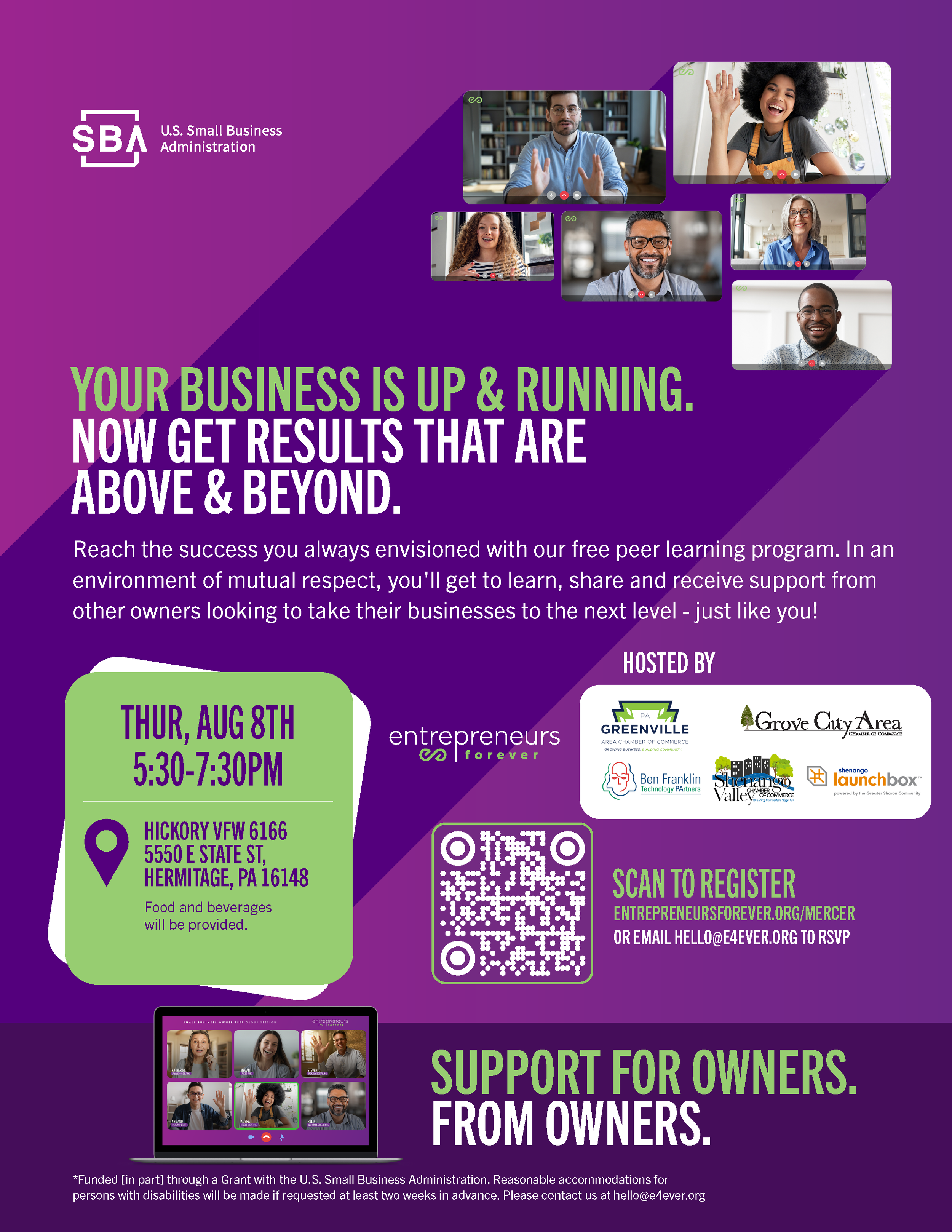 Entrepreneurs Forever Launch Event Thursday, August 8, 2024 5:30 PM 7:30 PM Hickory VFW 5550 East State Street Hermitage, PA, 16148 United States (map) Google Calendar ICS Register Here