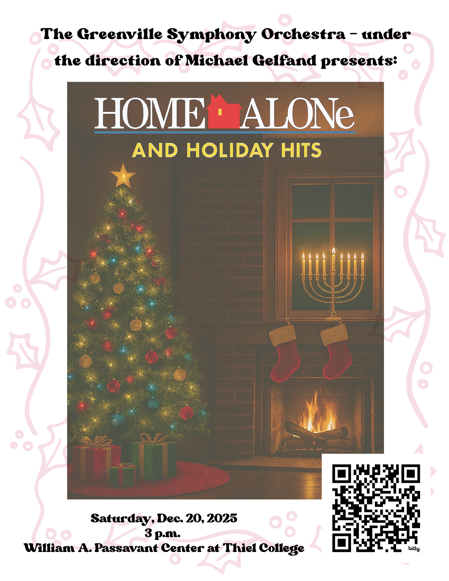 Back to All Events Home Alone and Holiday Hits Saturday, December 20, 2025 3:00 PM 4:00 PM William A. Passavant Center at Thiel College 38 Packard Avenue Greenville, PA, 16125 United States (map) Google Calendar ICS