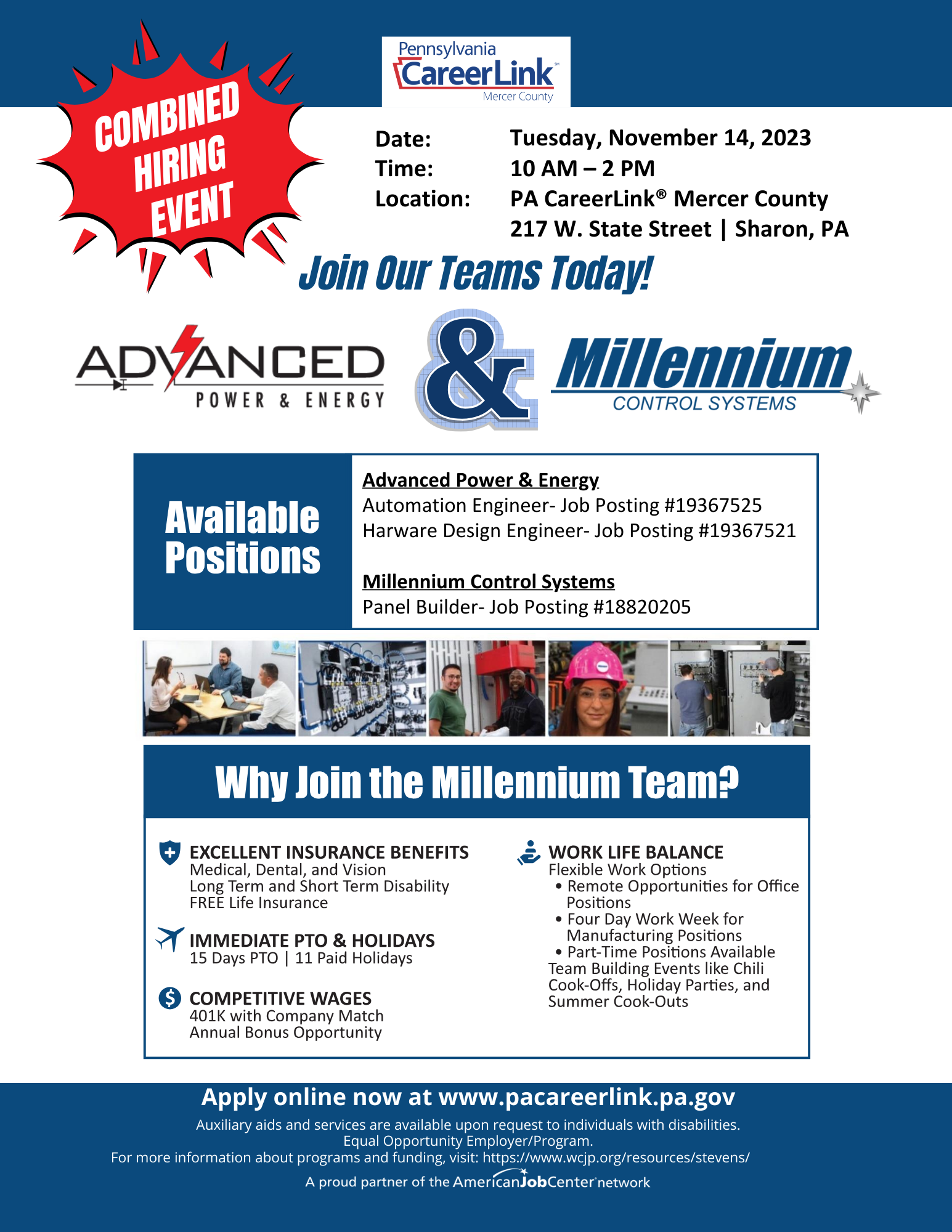 Hiring Event Tuesday, November 14, 2023 10:00 AM 2:00 PM PA CareerLink 217 West State Street Sharon, PA, 16146 United States (map) Google Calendar ICS