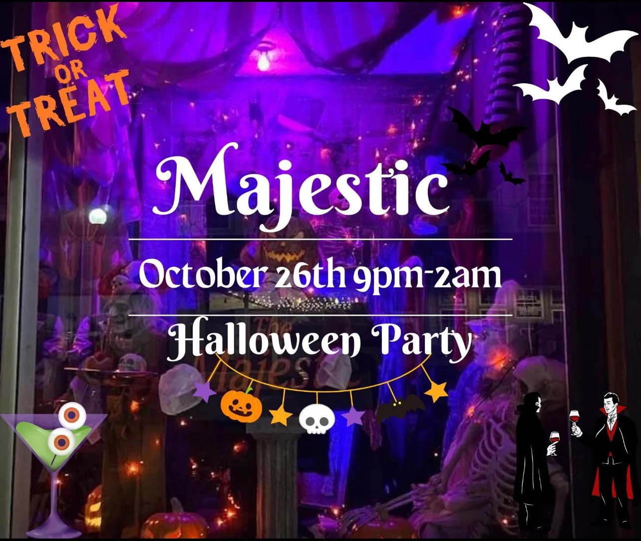 Majestic Halloween Party Saturday, October 26, 2024 9:00 PM Sunday, October 27, 2024 2:00 AM Majestic Bar & Grille 191 Main Street Greenville, PA 16125 United States (map) Google Calendar ICS