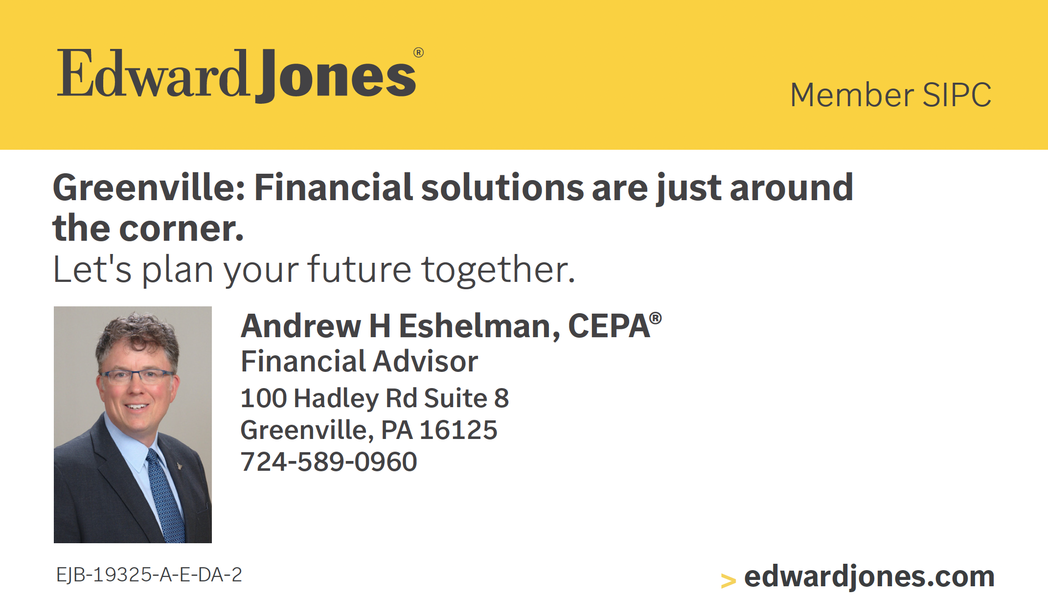 Edward Jones EInvestment52 Oct 5 Written By Benjamin Beck Andrew H. EshelmanLocation:100 Hadley Rd, Suite 8Greenville, PA 16125Phone:(724) 589-0960Email:andrew.eshelman@edwardjones.com Website Website Financial AdvisorInvestmentsInvestment ServicesRetirementRetirement SavingsSavingsLife InsuranceInsurance Benjamin Beck http://beckxco.com